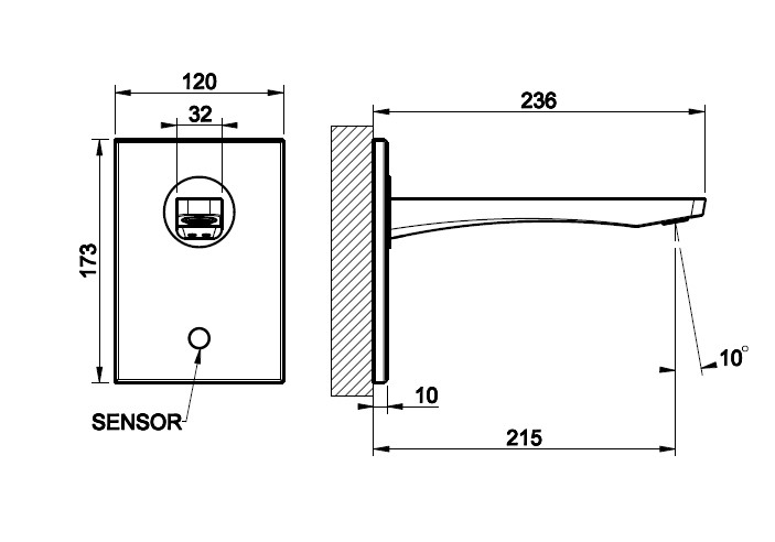 wysięg wylewki: 21,5 cm