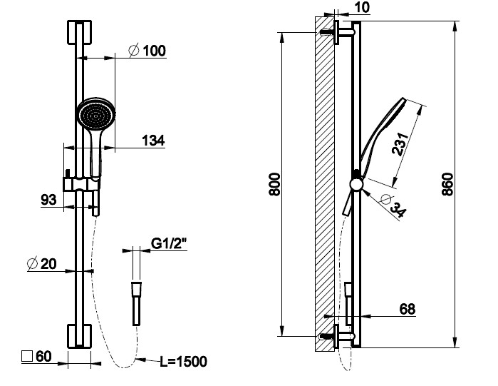 Zestaw prysznicowy z szyną do słuchawki,