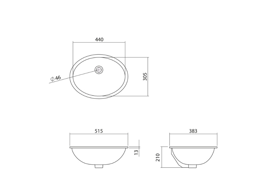 Umywalka bez otworu na baterię z przelewem.