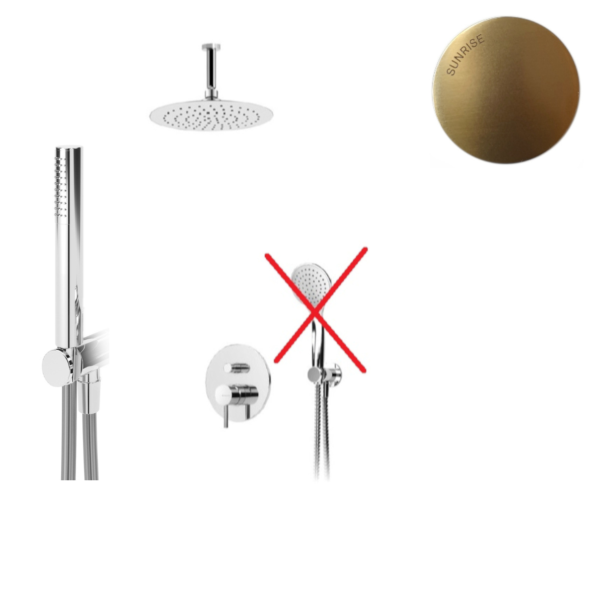 Bruma Lusitano Zestaw prysznicowy podtynkowy z deszczownicą Ø 250 mm z ramieniem sufitowym i słuchawką Sunrise 1075604SR