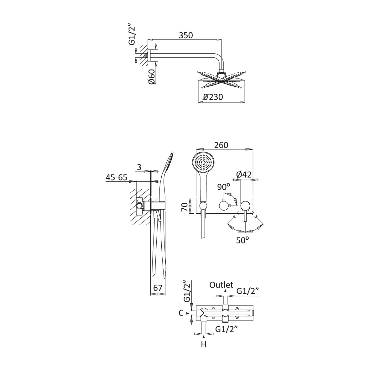 średnica deszczownicy: 230 mm