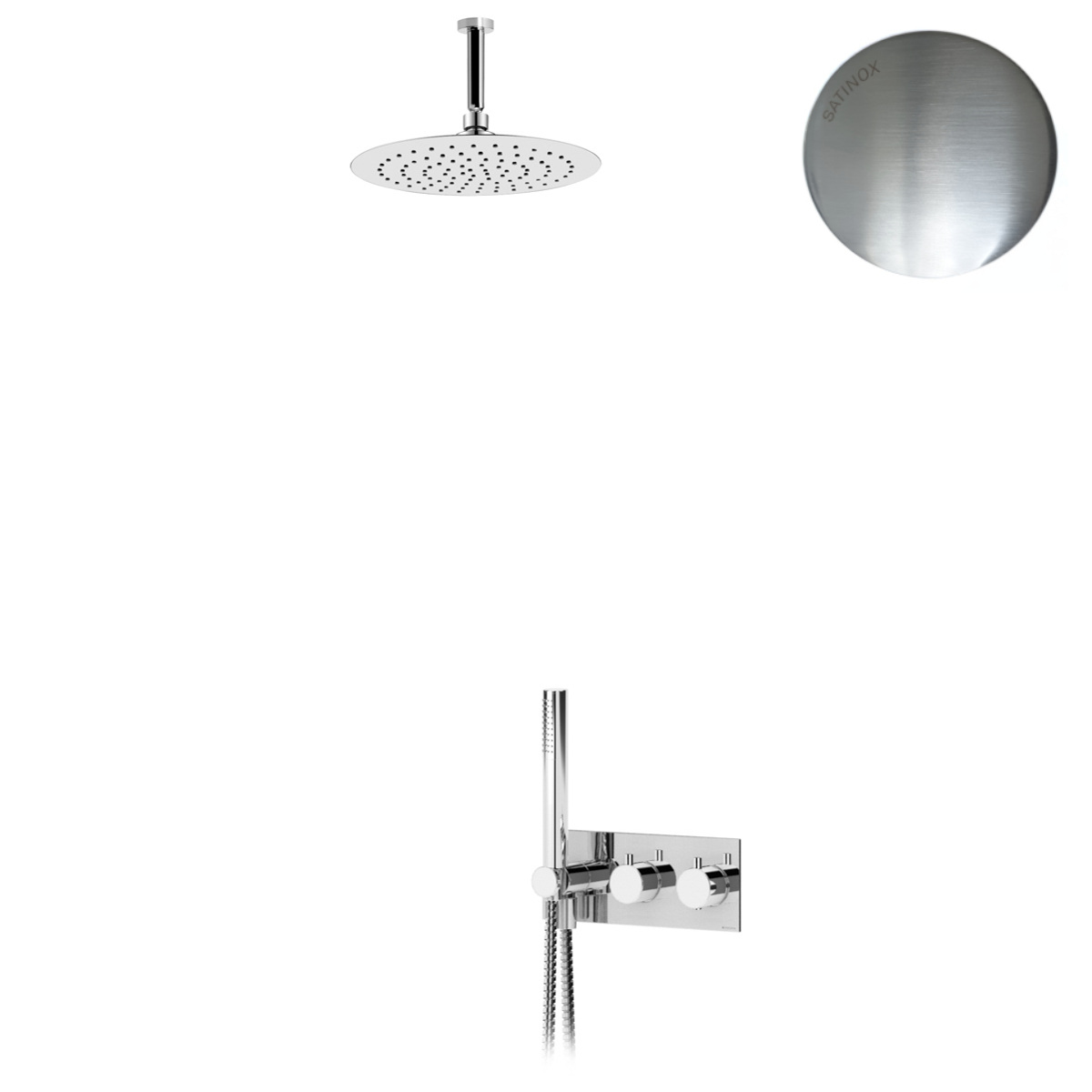 Bruma Lusitano Zestaw prysznicowy termostatyczny podtynkowy z deszczownicą Ø 250 mm z ramieniem sufitowym i zestawem słuchawkowym Satinox 1386002ST