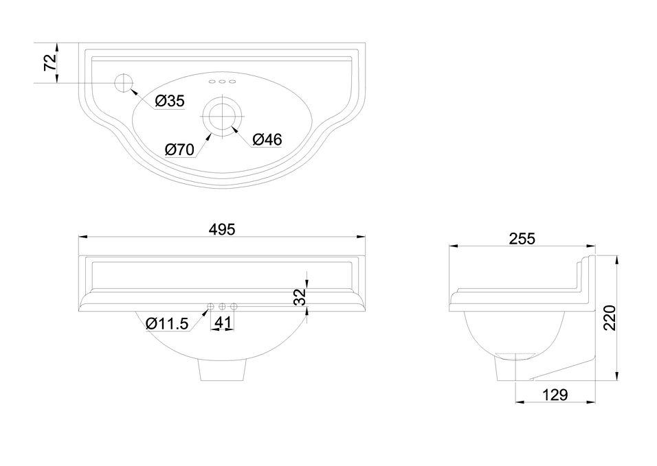 Burlington Curved Cloakroom Umywalka 49,5x25,5 biała P13L W MAGAZYNIE !!!
