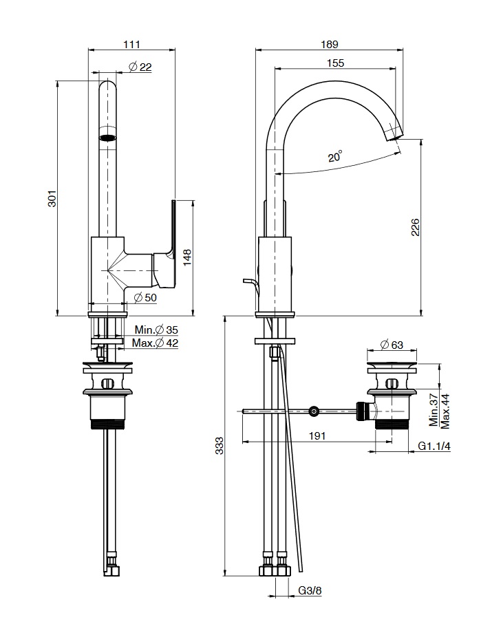 wysokość wylewki: 226 mm