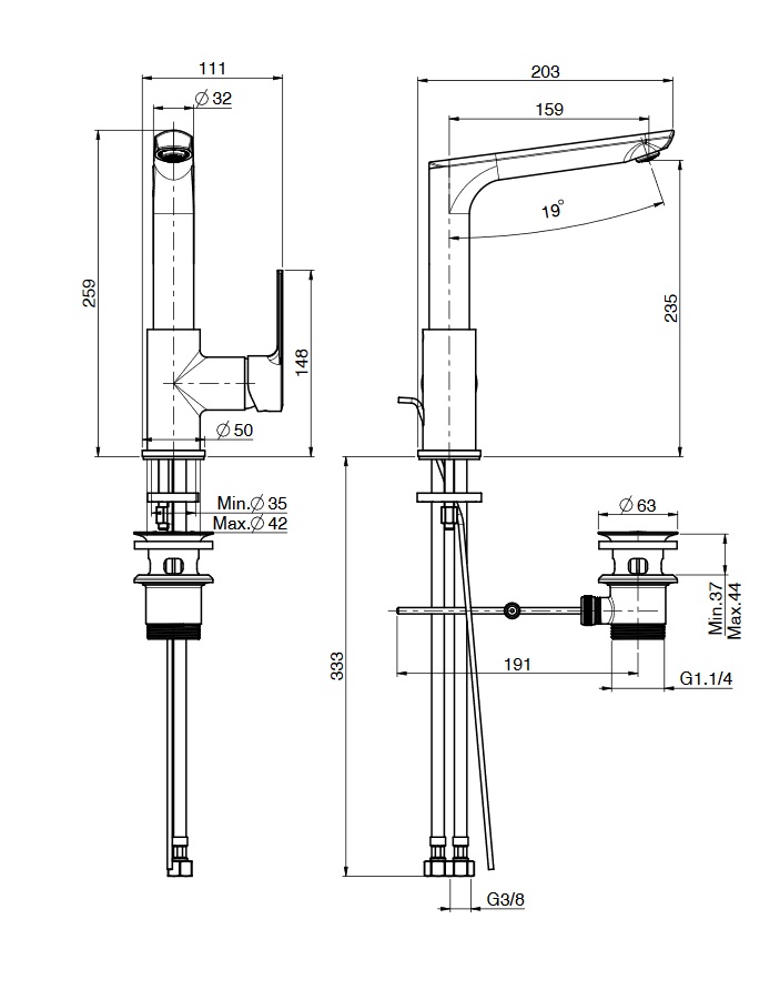 Carlo Frattini Mast Bateria umywalkowa jednootworowa z korkiem i obrotową wylewką Chrom F3151FCR.ES