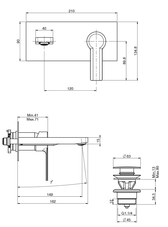 Carlo Frattini Mast Bateria umywalkowa ścienna z korkiem Chrom F3141X5CR
