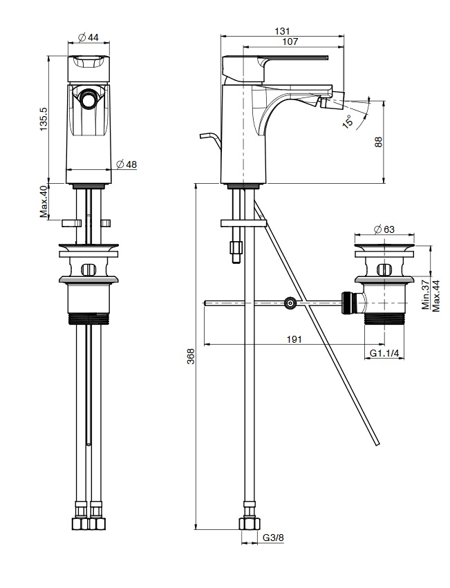 Carlo Frattini Mast Bateria bidetowa jednouchwytowa z korkiem automatycznym Chrom F3132CR