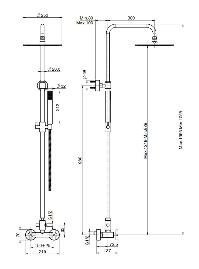 wysokość kolumny: 1065 - 1356 mm