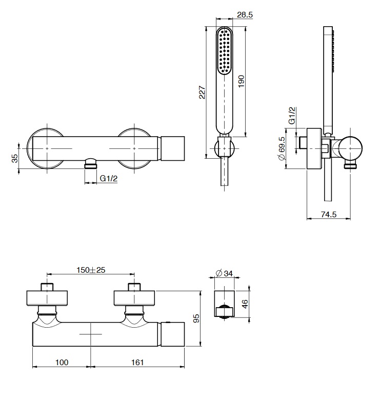 Carlo Frattini Nomos Go Bateria natryskowa z zestawem natryskowym Chrom F4165CR