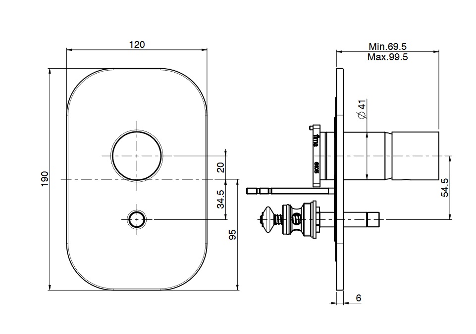wysięg uchwytu: 69,5 - 99,5 mm