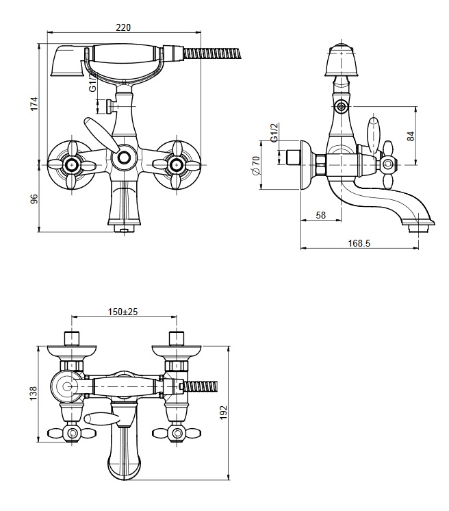 Carlo Frattini Olivia Bateria wannowo-natryskowa z zestawem natryskowym Chrom F5004CR
