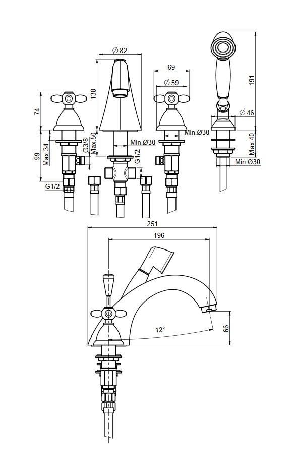 Carlo Frattini Olivia Bateria wannowa 4-otworowa z zestawem natryskowym Chrom F5014CR