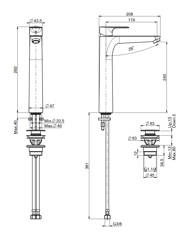 Carlo Frattini Serie 22 Bateria umywalkowa jednouchwytowa Chrom F3831/HCR.ES