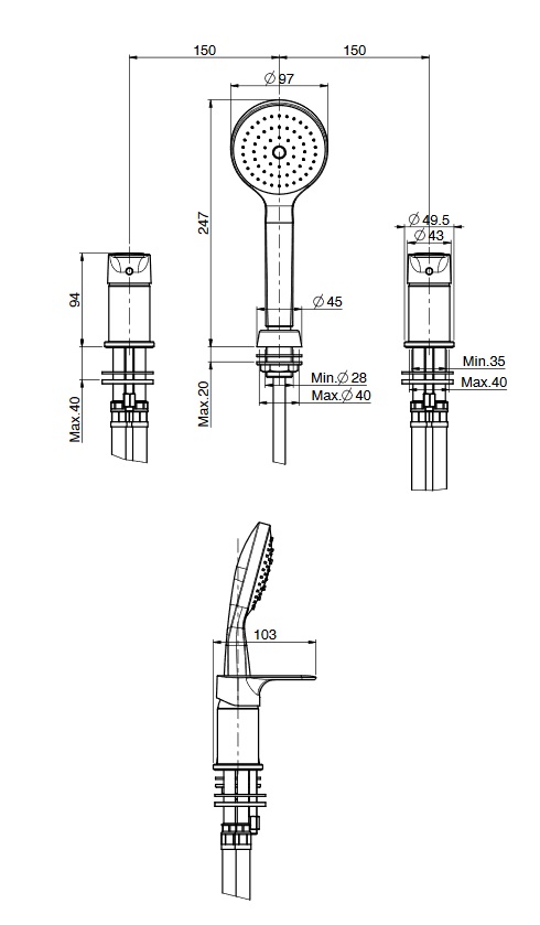 Carlo Frattini Serie 22 Bateria wannowa 3-otworowa Chrom F3844/1CR