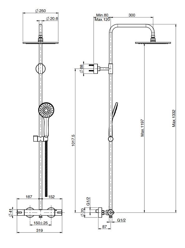 Carlo Frattini Serie 22 Bateria natryskowa z deszczownicą i zestawem natryskowym Chrom F3165/RP251CR