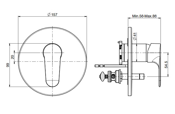 wysięg uchwytu: 56 - 86 mm