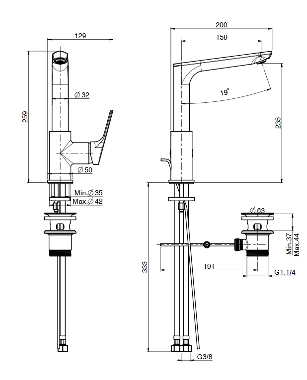 Carlo Frattini Serie 4 Bateria umywalkowa jednouchwytowa z korkiem Chrom F3781FNCR