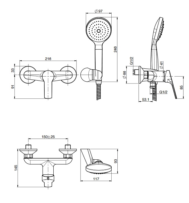 Carlo Frattini Serie 4 Bateria natryskowa z zestawem natryskowym Chrom F3765CR