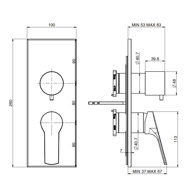 Carlo Frattini Serie 4 Bateria wannowo-natryskowa podtynkowa z przełącznikiem 2/3 wylotów Chrom F3769X6CR
