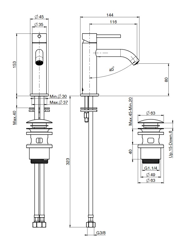 • Montaż: Jednootworowy