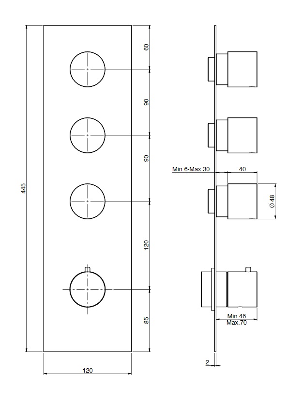 Carlo Frattini Spillo Steel Bateria podtynkowa termostatyczna z 3 zaworami wyjścia Stal nierdzewna F3089X3INOX