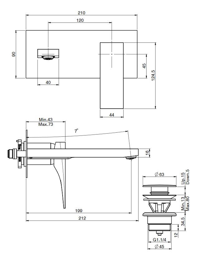 wysięg wylewki: 199 mm