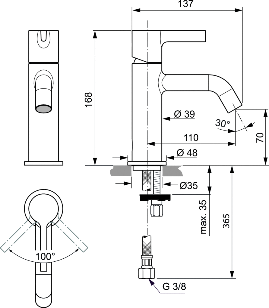 • Montaż: Jednootworowy