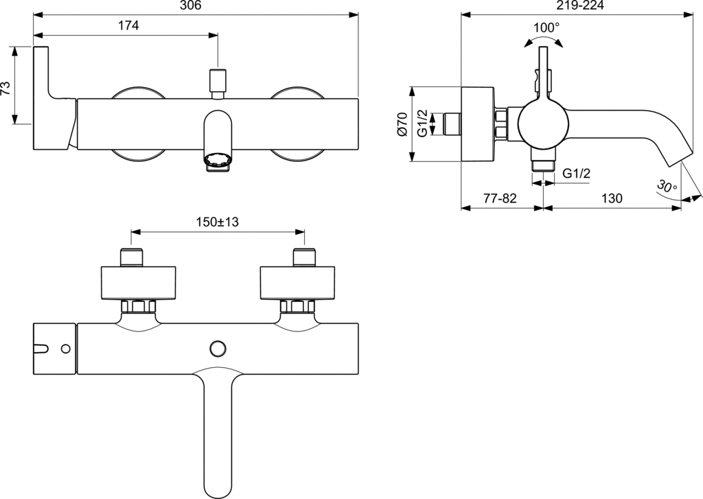 Ideal Standard Joy Bateria wannowo-natryskowa ścienna Czarny mat BC786A5