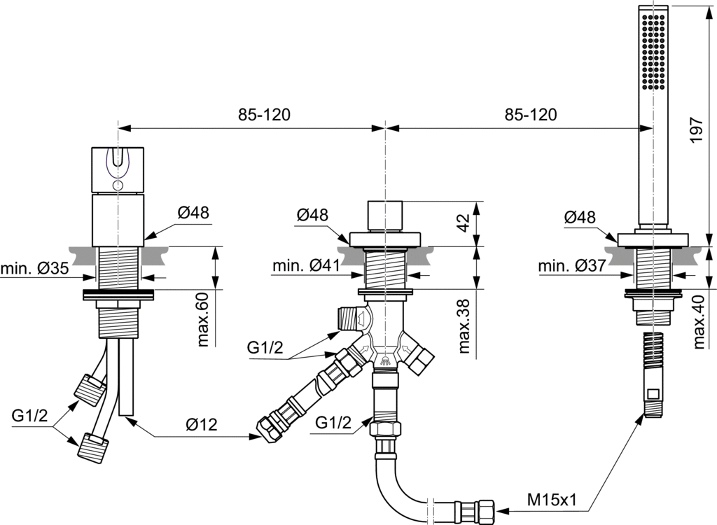 rozstaw otworów: 85 - 120 mm