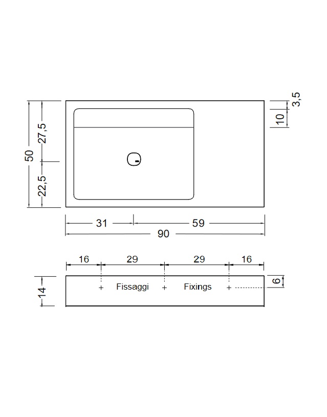 NIC Design Elen 90 Umywalka ceramiczna z blatem po prawej 90x50 cm Argilla 001728CF.052
