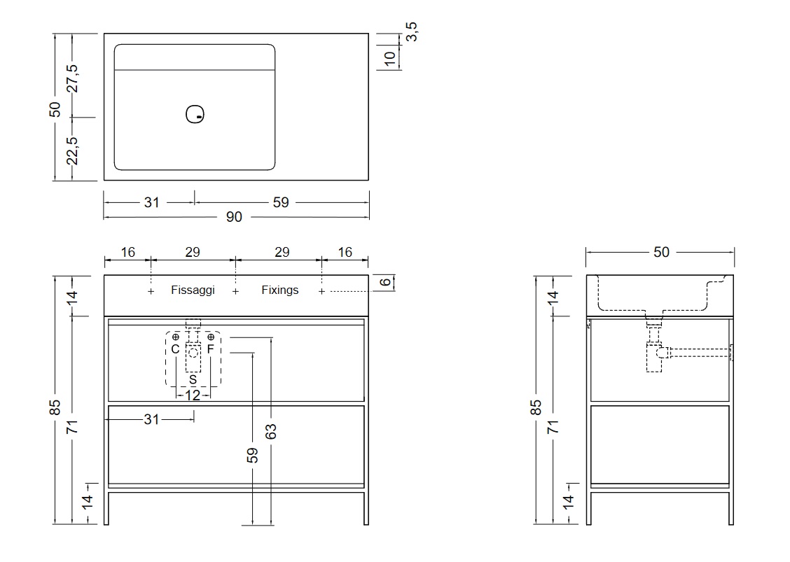 Umywalka z blatem po prawej w kolorze vaniglia 001734CF.056