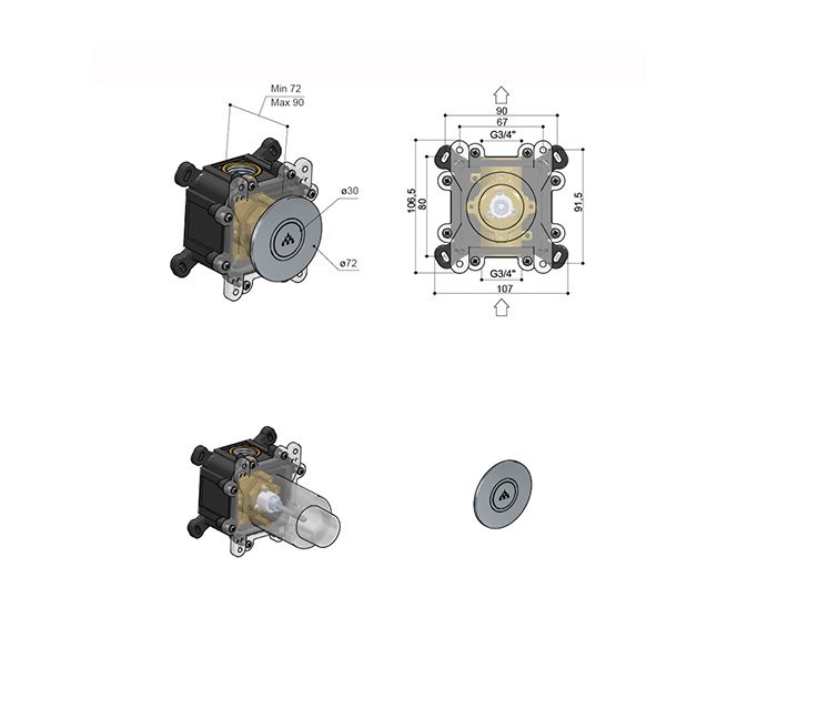 Głębokość montażu: 72 - 90 mm