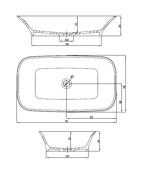 Hoesch Leros Umywalka stawiana na blat 700x400 mm biały mat 4473.013