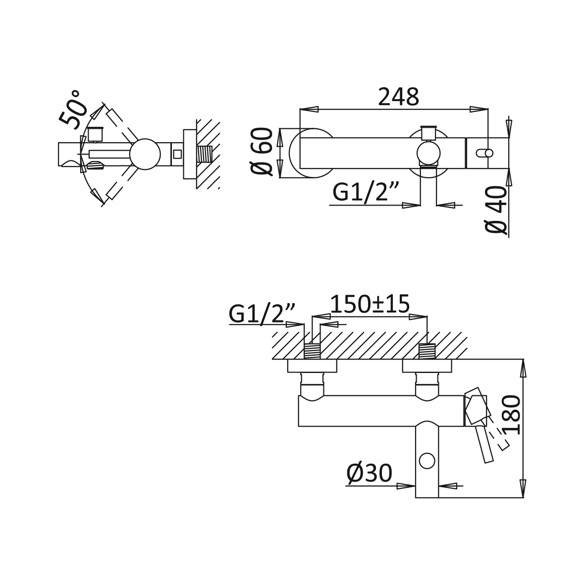 Bruma Lusitano Bateria wannowo-natryskowa Naścienna Sunset 1070301SS