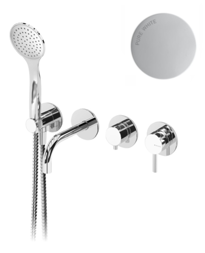 Bruma Lusitano Jednouchwytowa bateria wannowo-prysznicowa podtynkowa z 3 wylotami, z prysznicem ręcznym Pure White 1070901PW