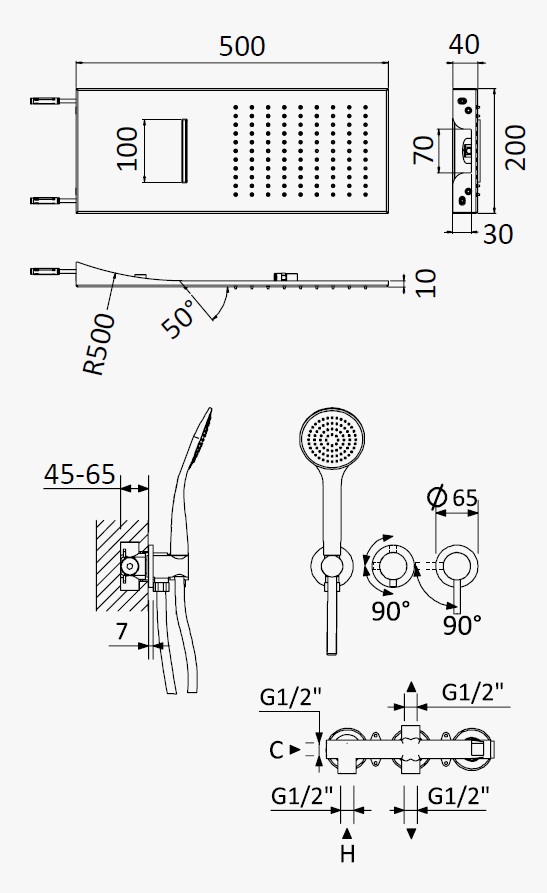 Bruma Lusitano Zestaw natryskowy podtynkowy z natryskiem Line Cascade i słuchawką prysznicową Chrom 1074101CR