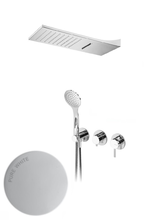Bruma Lusitano Zestaw natryskowy podtynkowy z natryskiem Line Cascade i słuchawką prysznicową Pure White 1074101PW