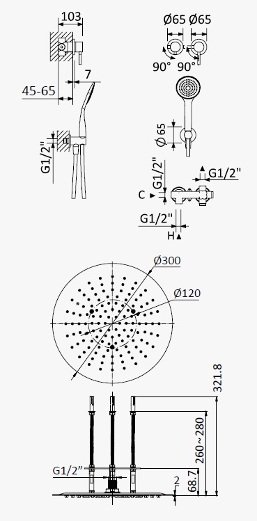 Średnica deszczownicy: 300 mm