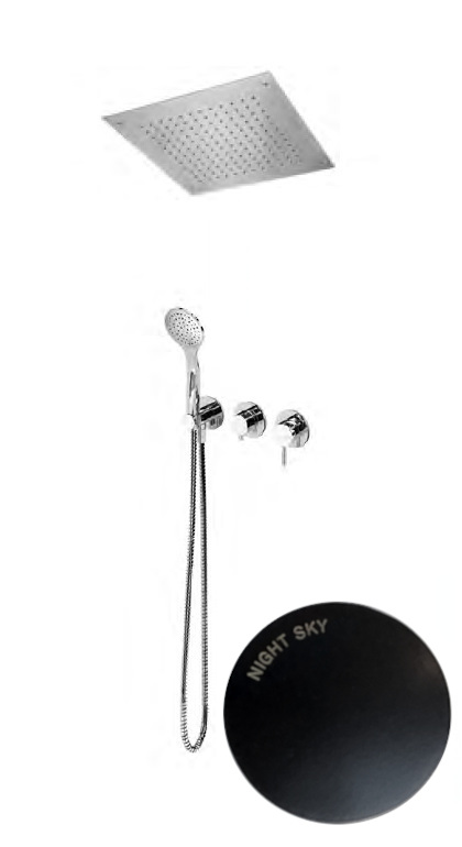 Bruma Lusitano Zestaw prysznicowy podtynkowy z deszczownicą 380x380 mm i słuchawka prysznicowa Night Sky 1074281NS