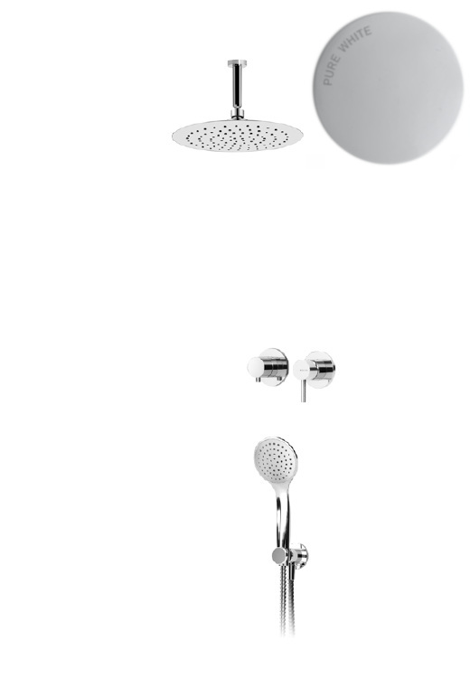 Bruma Lusitano Zestaw natryskowy podtynkowy z deszczownicą Ø 230 mm na ramienieniu sufitowym i słuchawką prysznicową Pure White 1076508PW