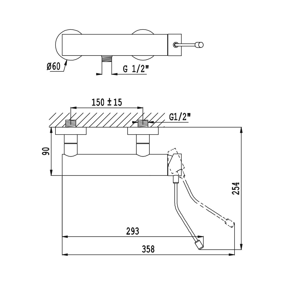Bruma Lusitano Bateria natryskowa ścienna z długim uchwytem Chrom 1540401CR