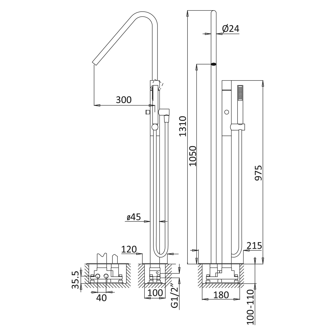 Bruma Lusa Bateria wannowo-natryskowa wolnostojąca Chrom 1010701CR