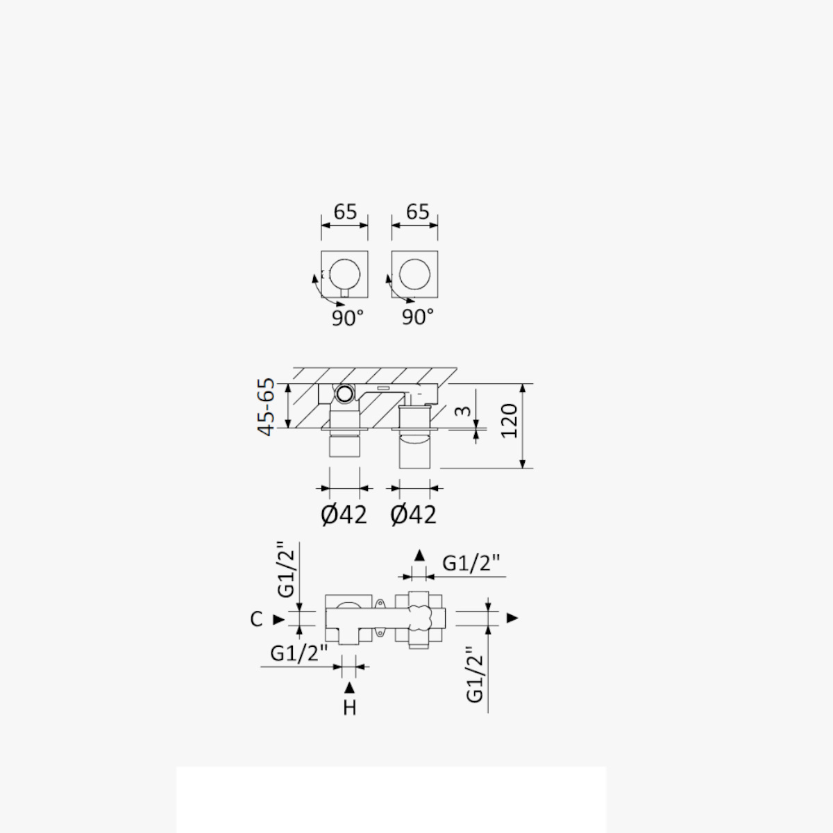 Szerokość rozety: 65/65 mm