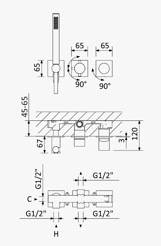 Bruma Lusa Bateria natryskowa podtynkowa z 3 wylotami Sunset 1012001SS