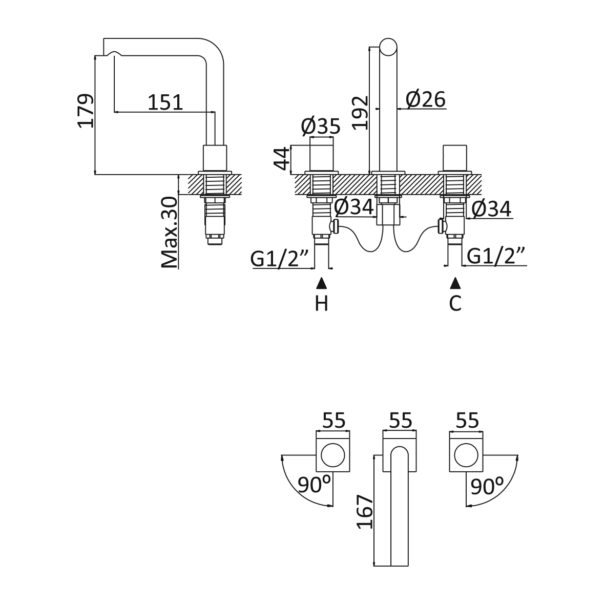 Bruma Lusa Bateria umywalkowa 3-otworowa Night Sky 1012502NS