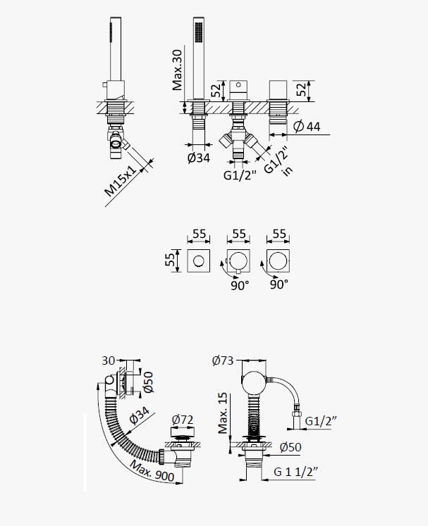Długość odpływu: 900 mm