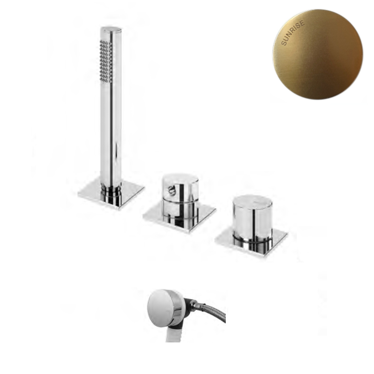 Bruma Lusa Zestaw wannowo-natryskowy 3-otworowa ze słuchawką prysznicową i odpływem Sunrise 1012005SR