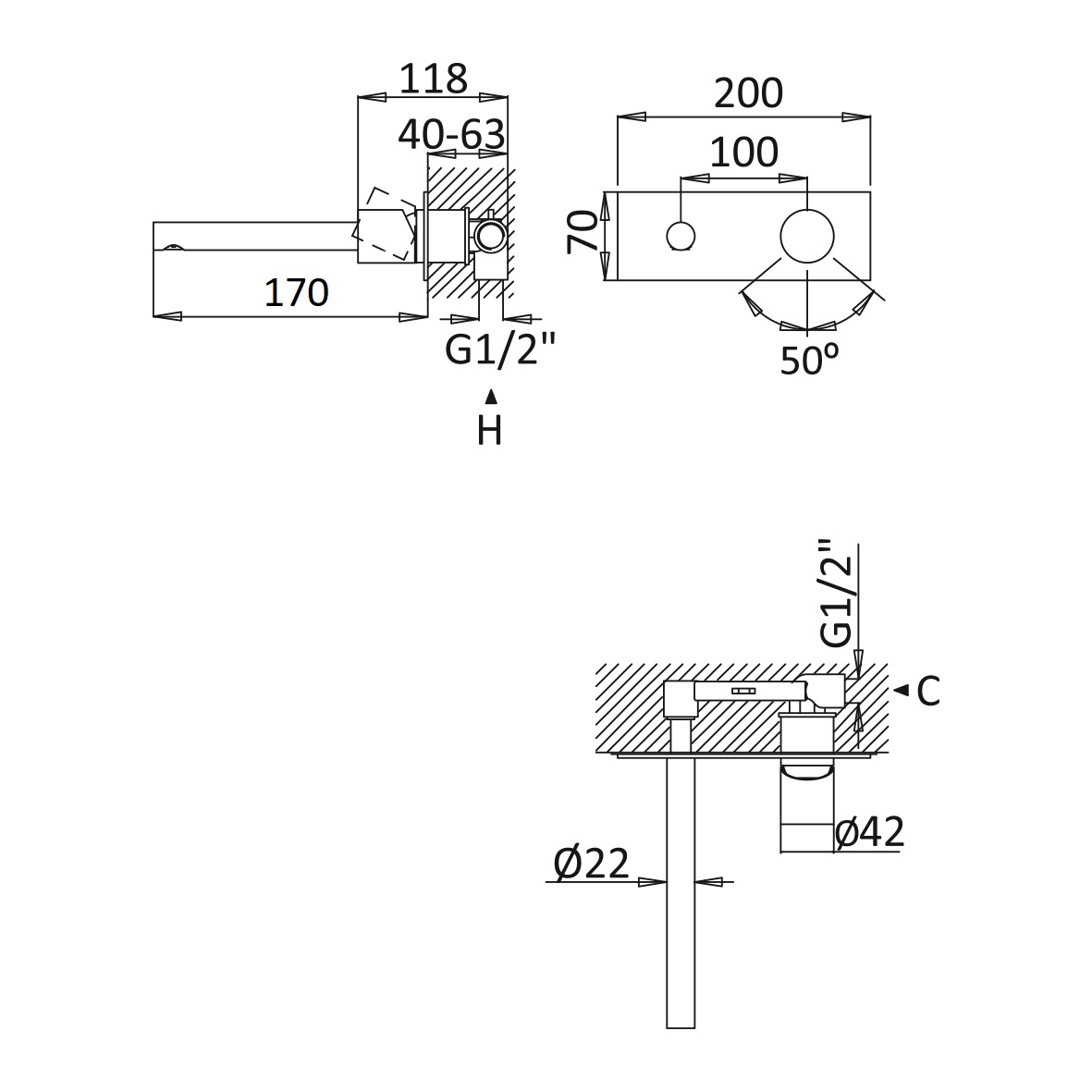 Długość wylewki: 170 mm