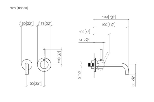 DornBracht Meta Bateria umywalkowa ścienna z mieszaczem na pojedynczych rozetach element zewnętrzny chrom 3686266000