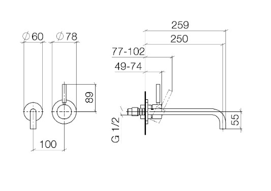 Element podtynkowy naścienny jednouchwytowy, mieszacz z prawej strony, kod produktu: 3581697090